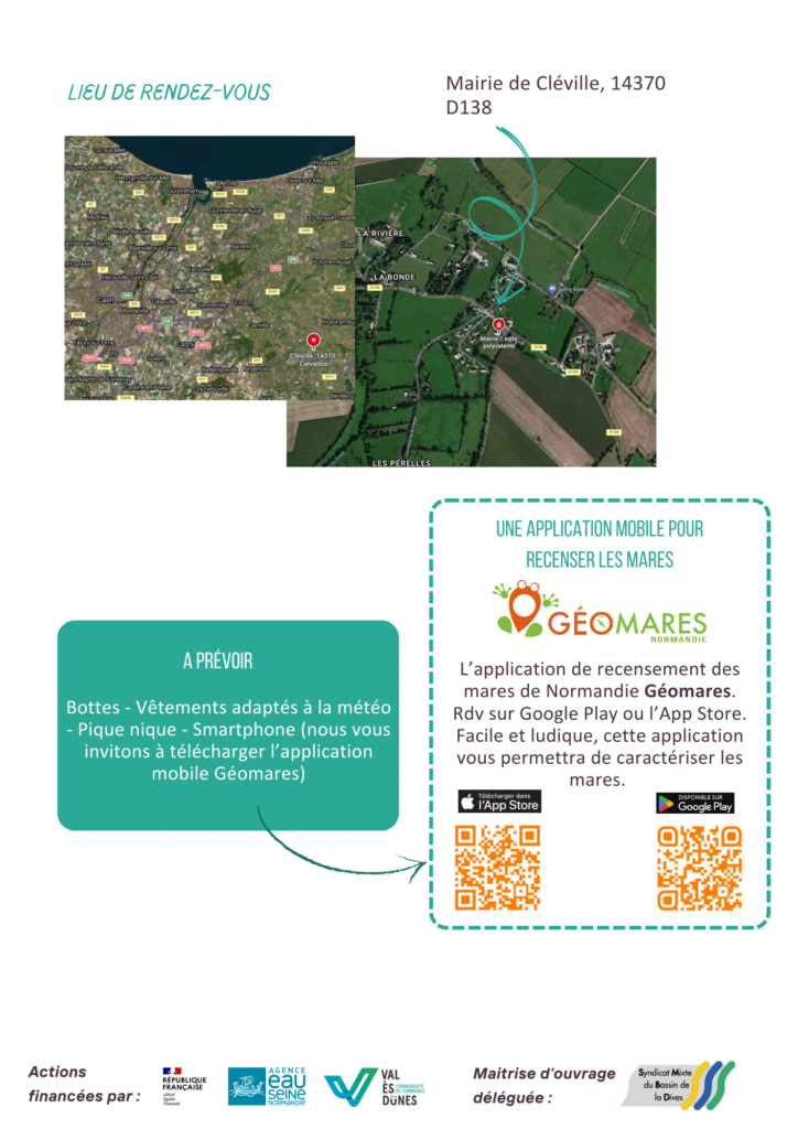 Rendez-vous à la mairie de Cléville (D138), gratuit et ouvert à tous. À prévoir : bottes, tenue adaptée, pique-nique et smartphone (avec l’application Géomare si possible)